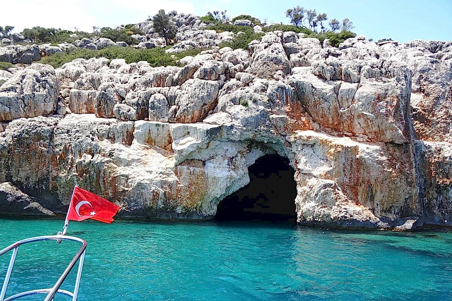 Kekova Tekne Turu’nun son durağı, Aşırlı Adası’nda bulunan Korsan Mağarası. Efsanelere göre eski korsanların saklanmak için kullandığı bu mağara, bugün doğayla iç içe yüzmek ve keşfetmek isteyenler için harika bir nokta.